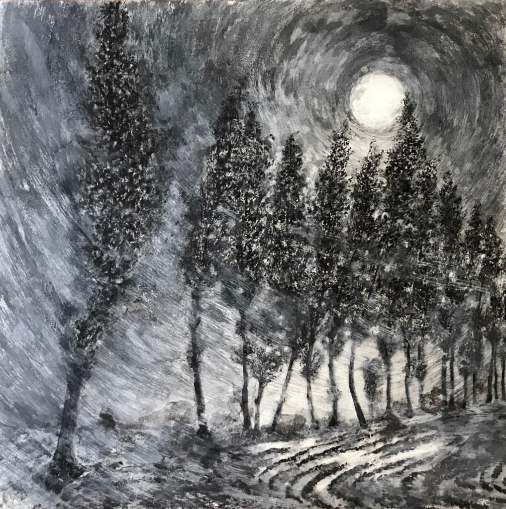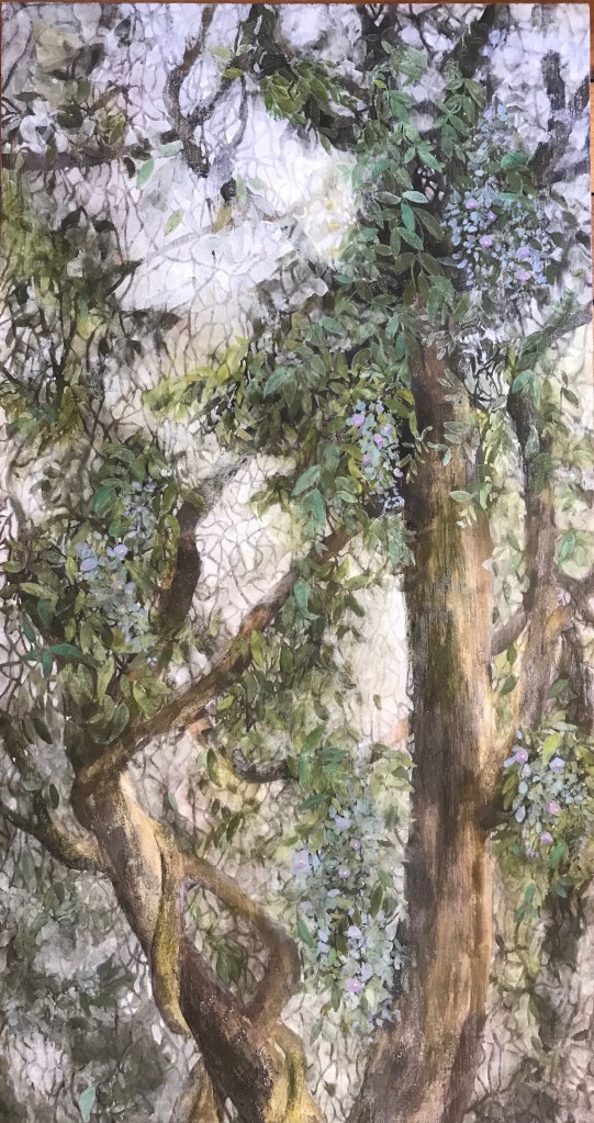 « SOLITAIRE » Papier japonais marouflé sur bois, pigments minéraux – 46×86 cm – 2023